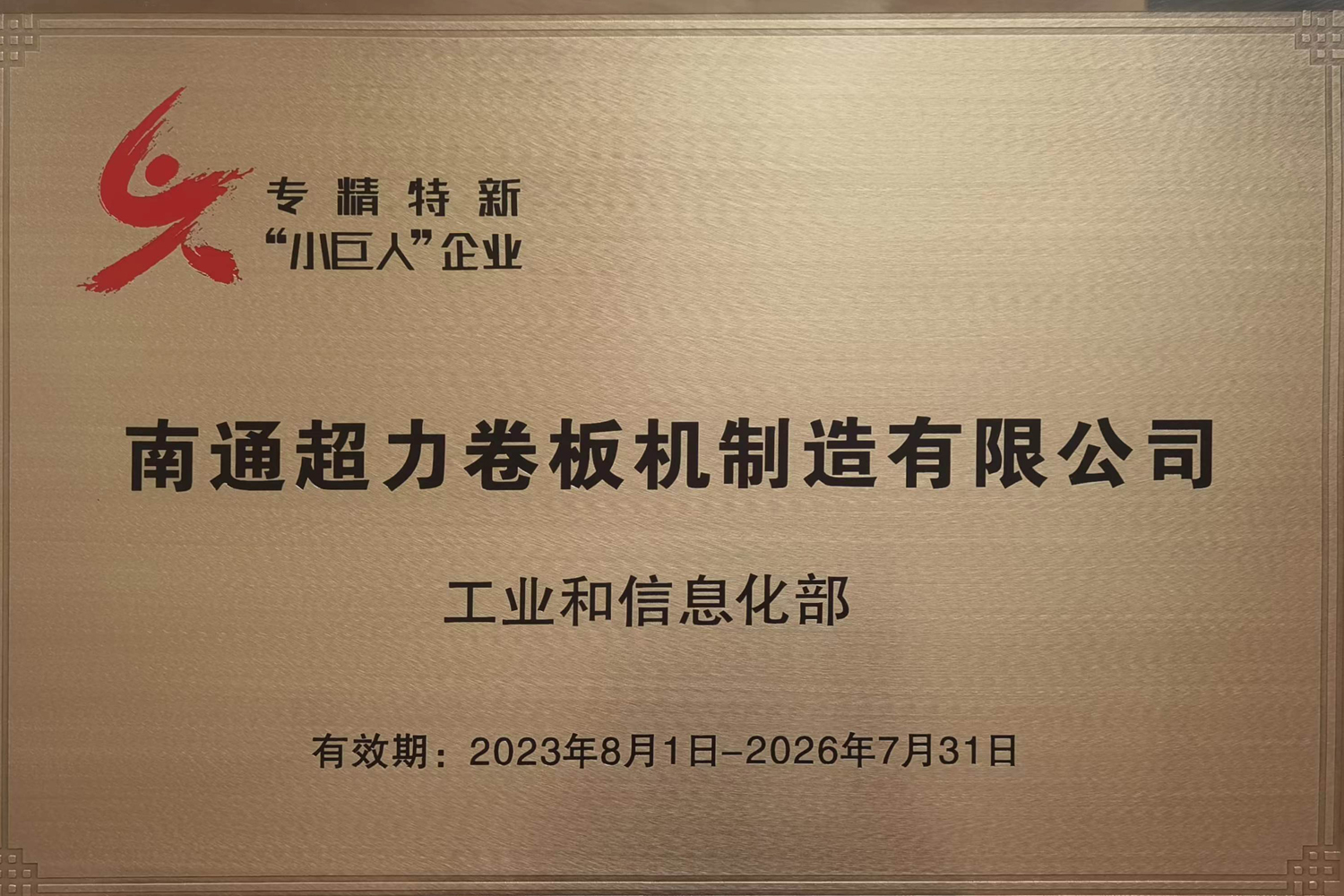 南通超力卷板機公司憑借15年來對卷板機領域的專注耕耘,堅持自主創(chuàng)新,夯實核心競爭力,成功入選2023年國家級專精特新“小巨人”企業(yè)名單。